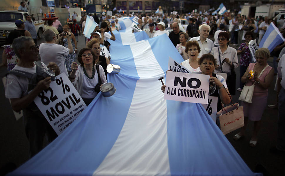 O número é uma estimativa da organização do protesto --a polícia ainda não divulgou dados nesta noite. Ainda assim, a manifestação é a maior realizada contra o governo desde que Cristina assumiu a Presidência argentina, cinco anos atrás.Diante do obelisco --um dos principais monumentos da capital-- iluminado com as cores da bandeira, os manifestantes pediram mais liberdade democrática e não à "re-reeleição" de Cristina, ideia lançada por intelectuais, mas não encampada oficialmente pelos governistas.