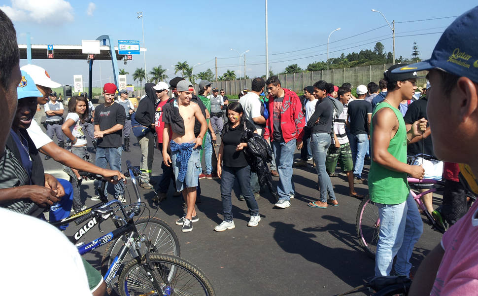 Um grupo de 120 pessoas bloqueou em Cosmópolis (SP) a rodovia Professor Zeferino Vaz (SP-332), que liga Campinas a Mogi Guaçu, por cerca de oito horas.