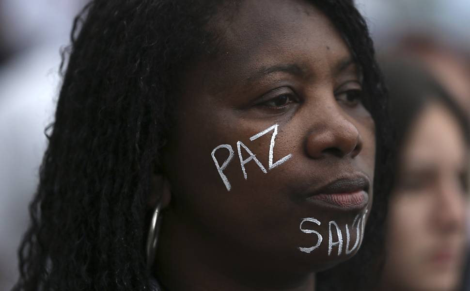 Policiais militares acompanham a manifestação e carros da PM fazem rondas nas ruas do bairro. Um carro do Bope passou e foi vaiado pela multidão, que emendou gritos e xingamentos ao governador do Rio.